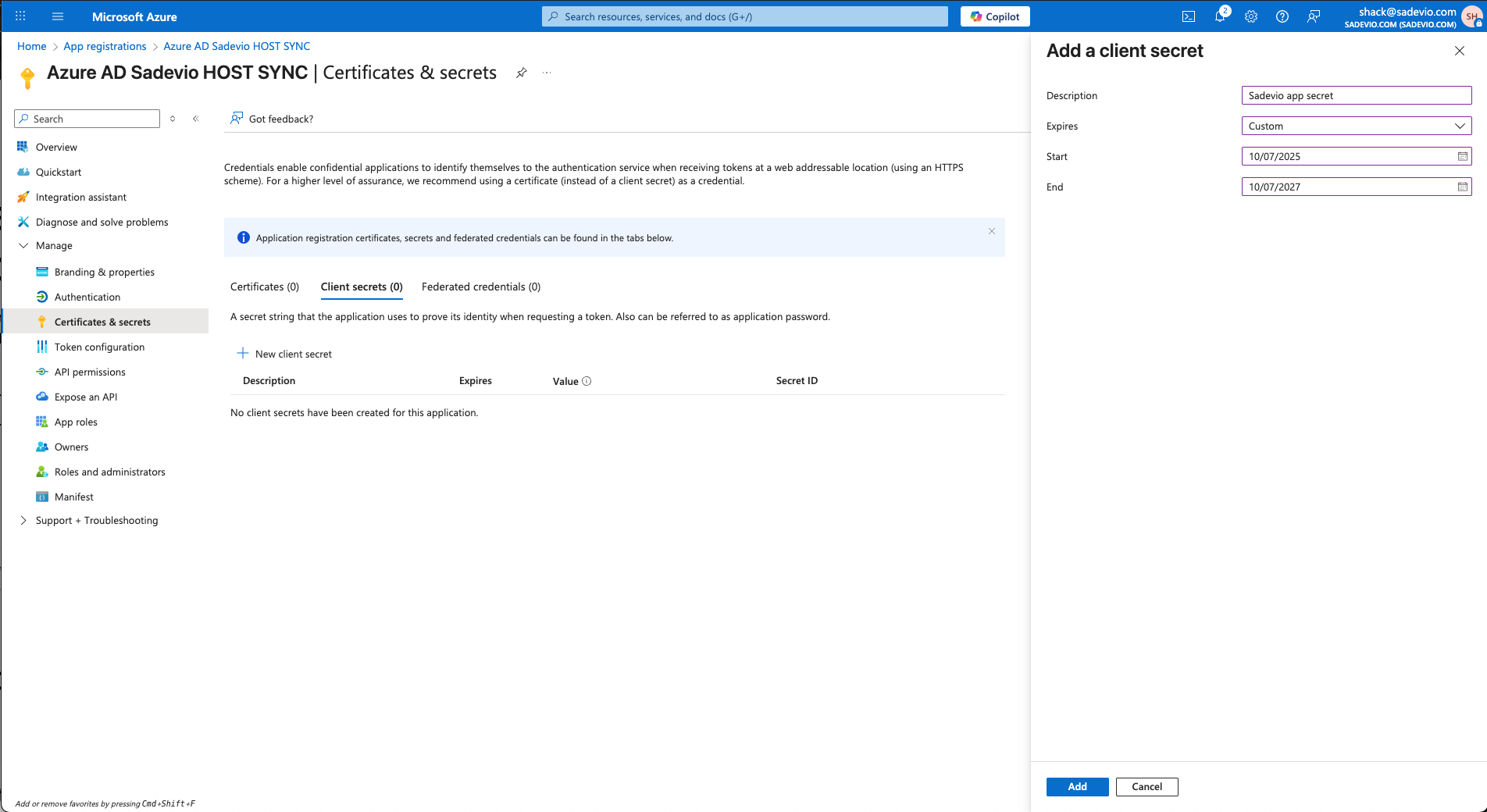 In the new app, go to "Manage" -> "Certificates & secrets"