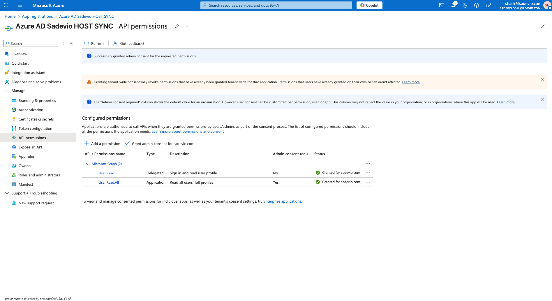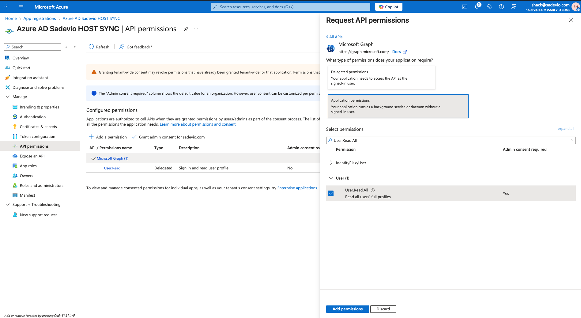 - Add permission User.Read.All