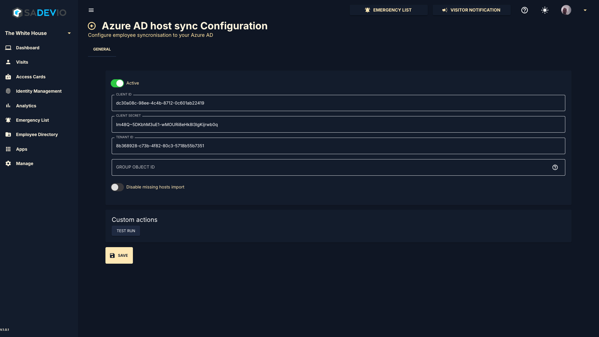 The system will download the employee information from AD and all employees which are missing in this information will be disabled within SADEVIO