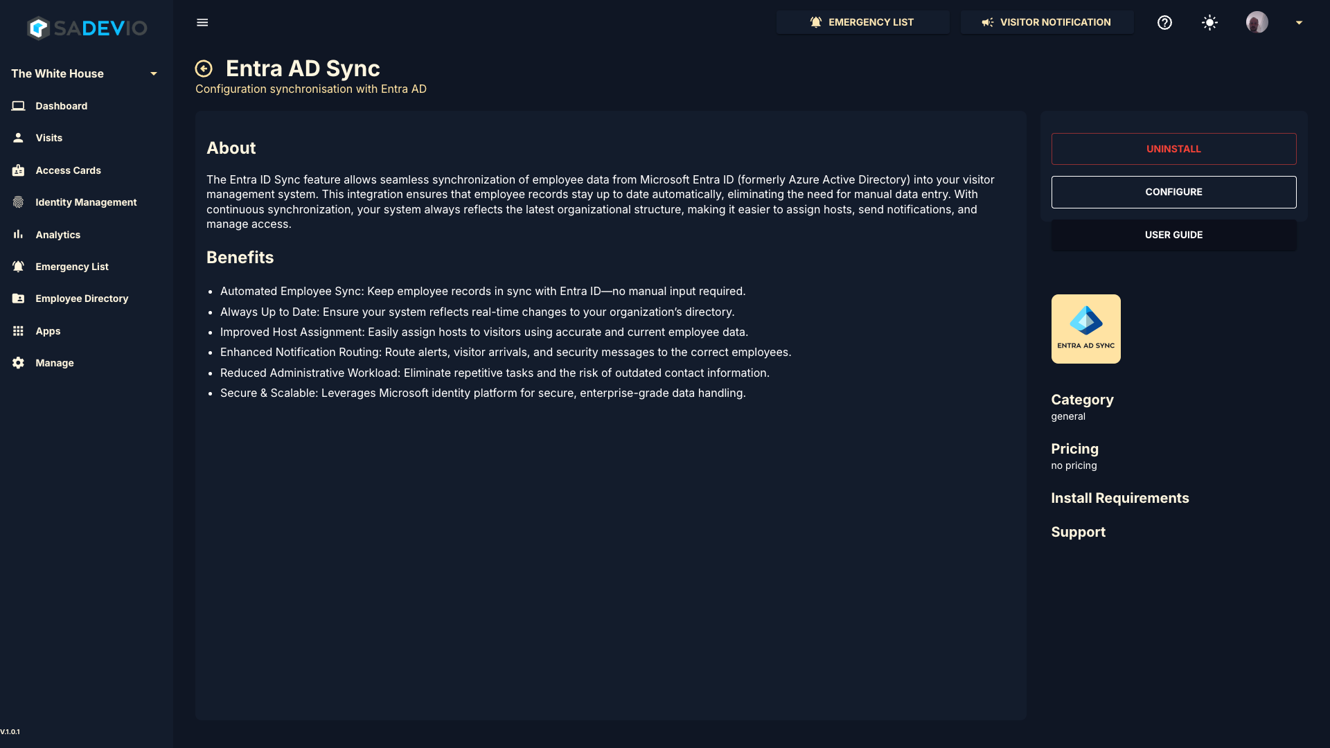To activate the sadevio Entra AD sso saml login to your application and go to Apps and select Entra AD SSO SAML