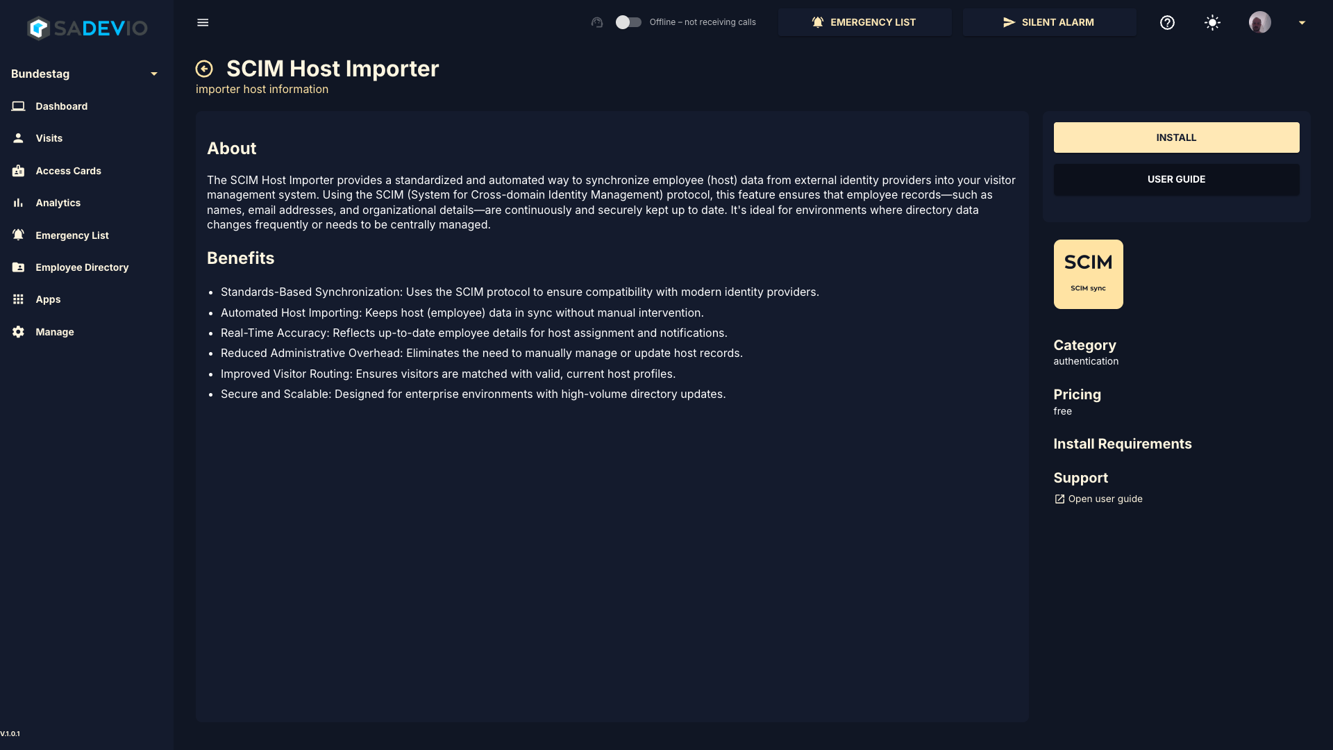 To activate the sadevio SCIM host synchronisation go to your application and go to Apps and select SCIM Host Sync. Install the application.