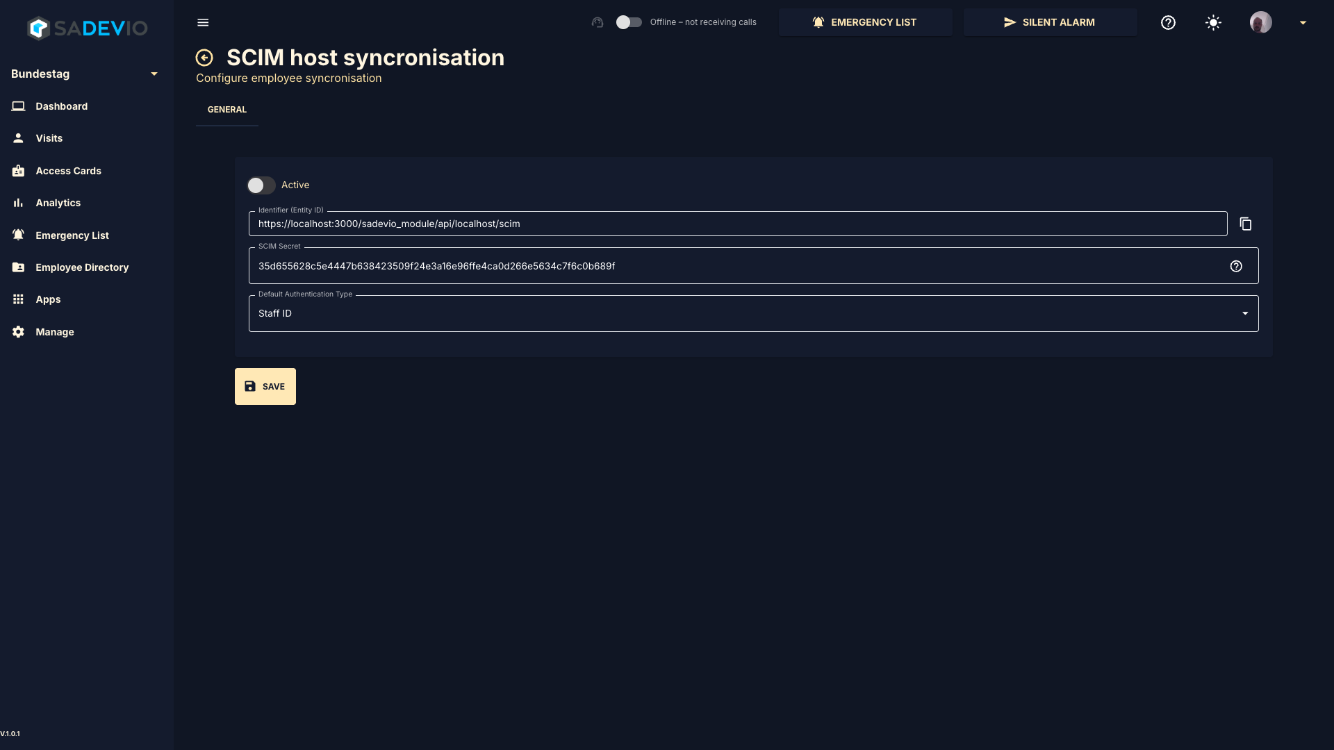 The system will download the employee information from AD and all employees which are missing in this information will be disabled within SADEVIO